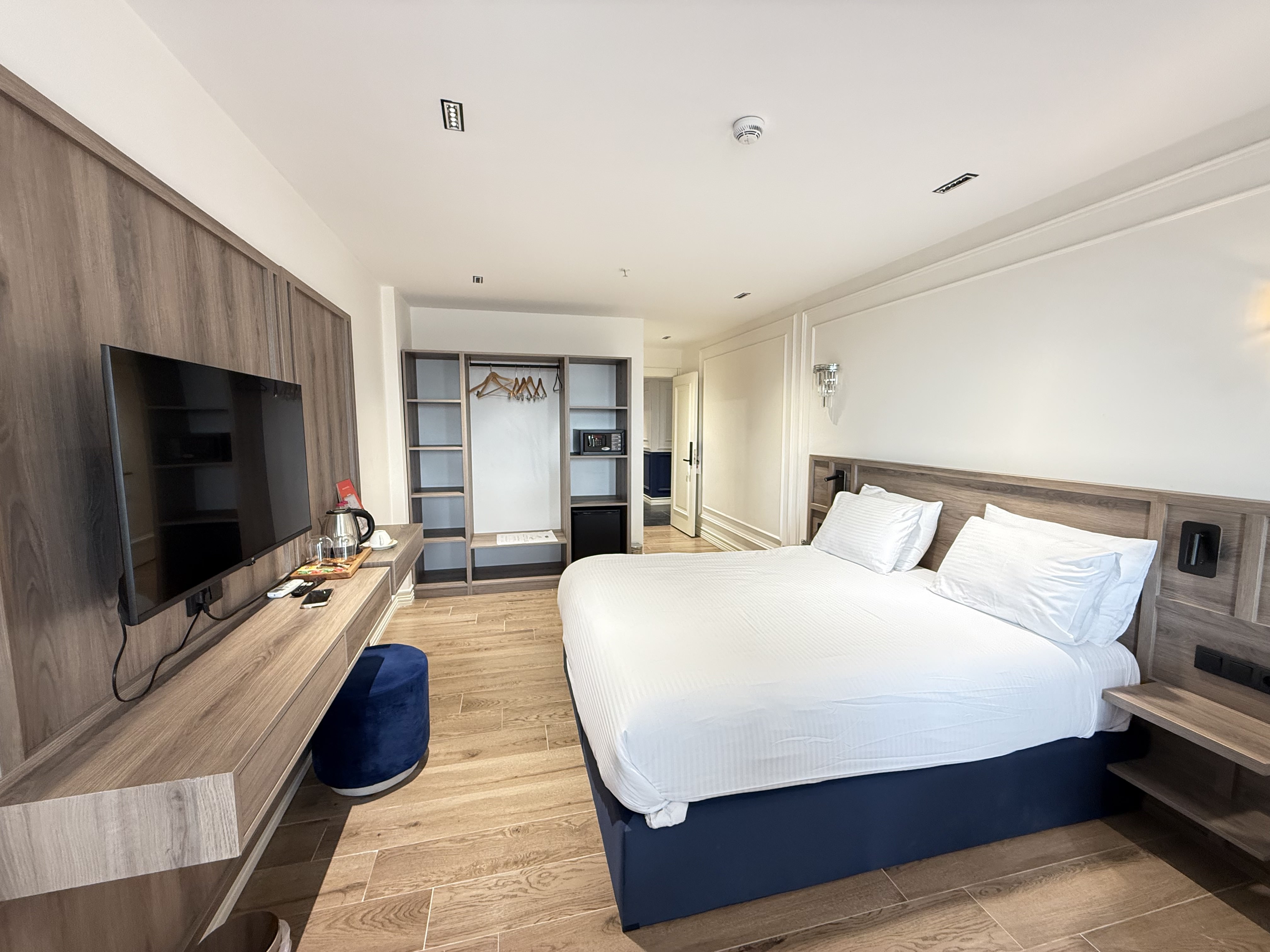Modern dekorasyonu, kaliteli mobilyaları ve özenle düşünülmüş detaylarıyla DeLüx Oda, günün yorgunluğunu geride bırakabileceğiniz huzurlu bir ortam yaratır. Rahat yataklar, fonksiyonel yaşam alanı ve şık banyo tasarımı ile kendinizi evinizde hissetmeniz hedeflenir.