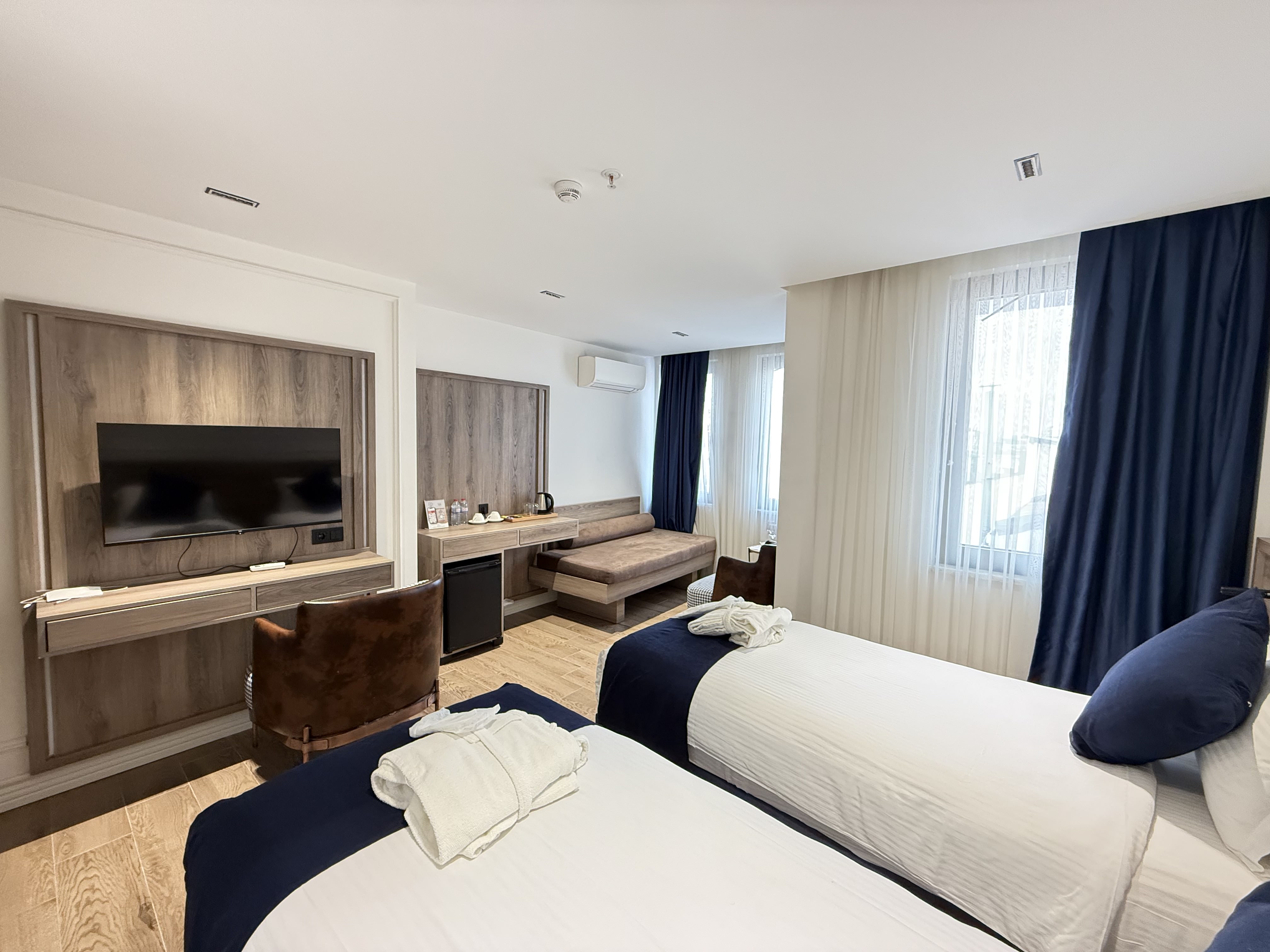 Standart 2 Yataklı Oda, Prime Bosphorus Beşiktaş’ta konforlu ve pratik bir konaklama arayan misafirler için ideal bir seçenektir. Iki ayrı yatak düzeni sayesinde aileler, arkadaş grupları veya iş seyahati için konaklayan misafirler rahat ve keyifli bir deneyim yaşar.